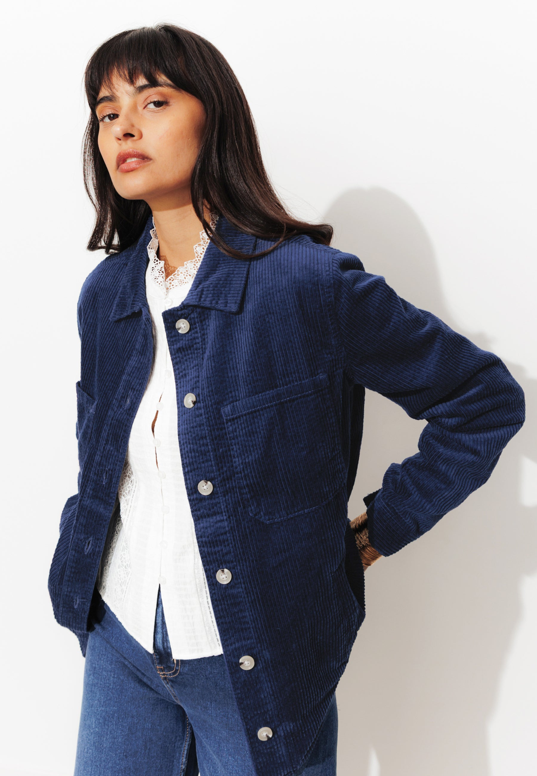 Veste pour les unes, surchemise pour les autres. Avoir une ALMA en version velours, c'est investir dans une pièce culte ! Saison après saison, on la porte ouverte, boutonnée ou ceinturée. Velours corduroy, 100% Coton. Coupe droite. Col chemise. Ouverture boutonnée. 4 poches. Manches longues. Poignets boutonnés. Surpiqûres. Base arrondie. Contient du coton recyclé.