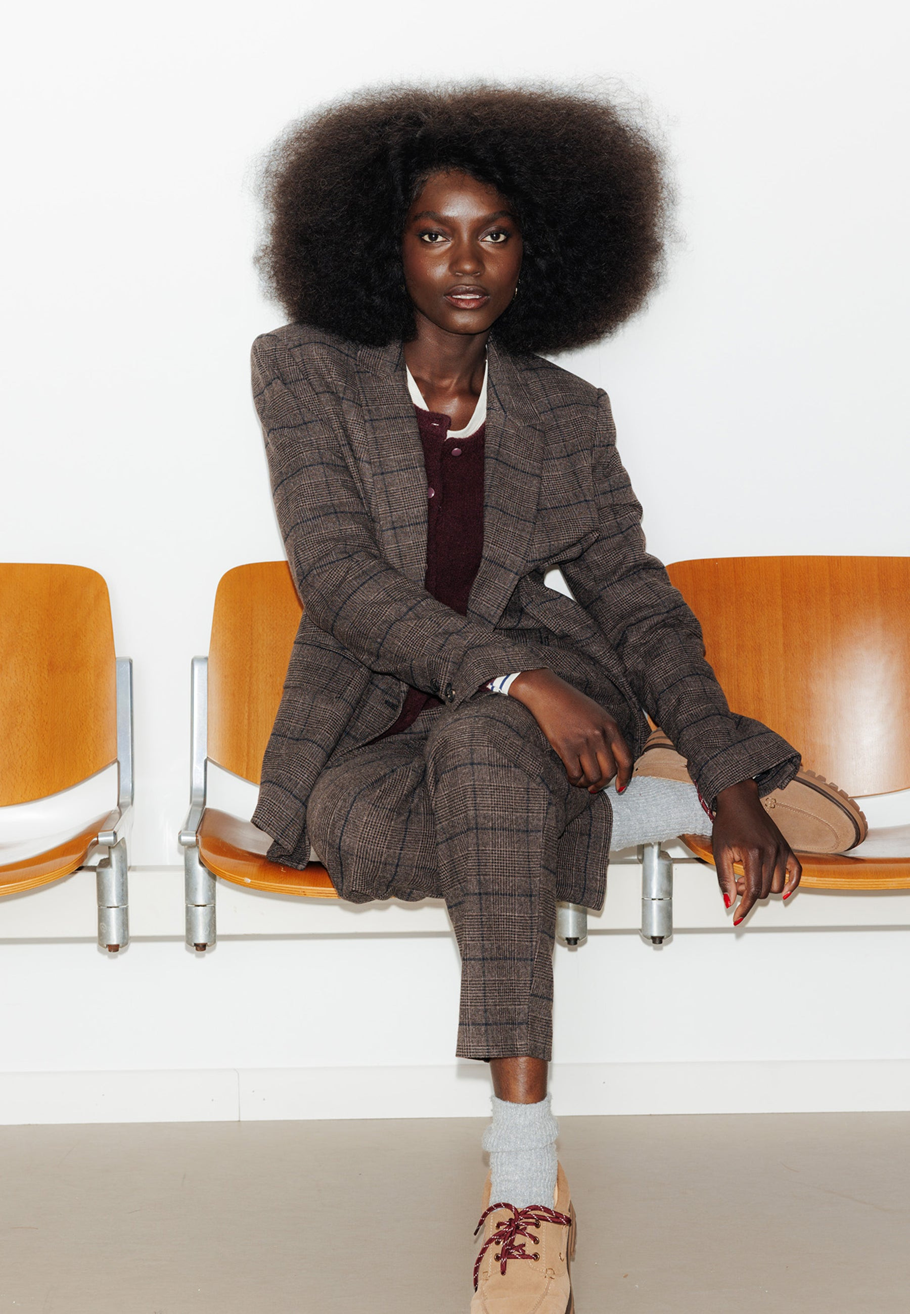 Cette saison, il faut ajouter deux composantes essentielles à vos looks : des carreaux et du marron. La solution toute trouvée est ici : c'est cette veste de tailleur. Coupe ajustée. Fermeture croisée, double boutonnage. Epaulettes. Col tailleur. Epaulettes. Manches longues, rangée de boutons en décoration. 2 poches à rabat. Base droite. Doublure. Cette veste femme contient des fibres recyclées.