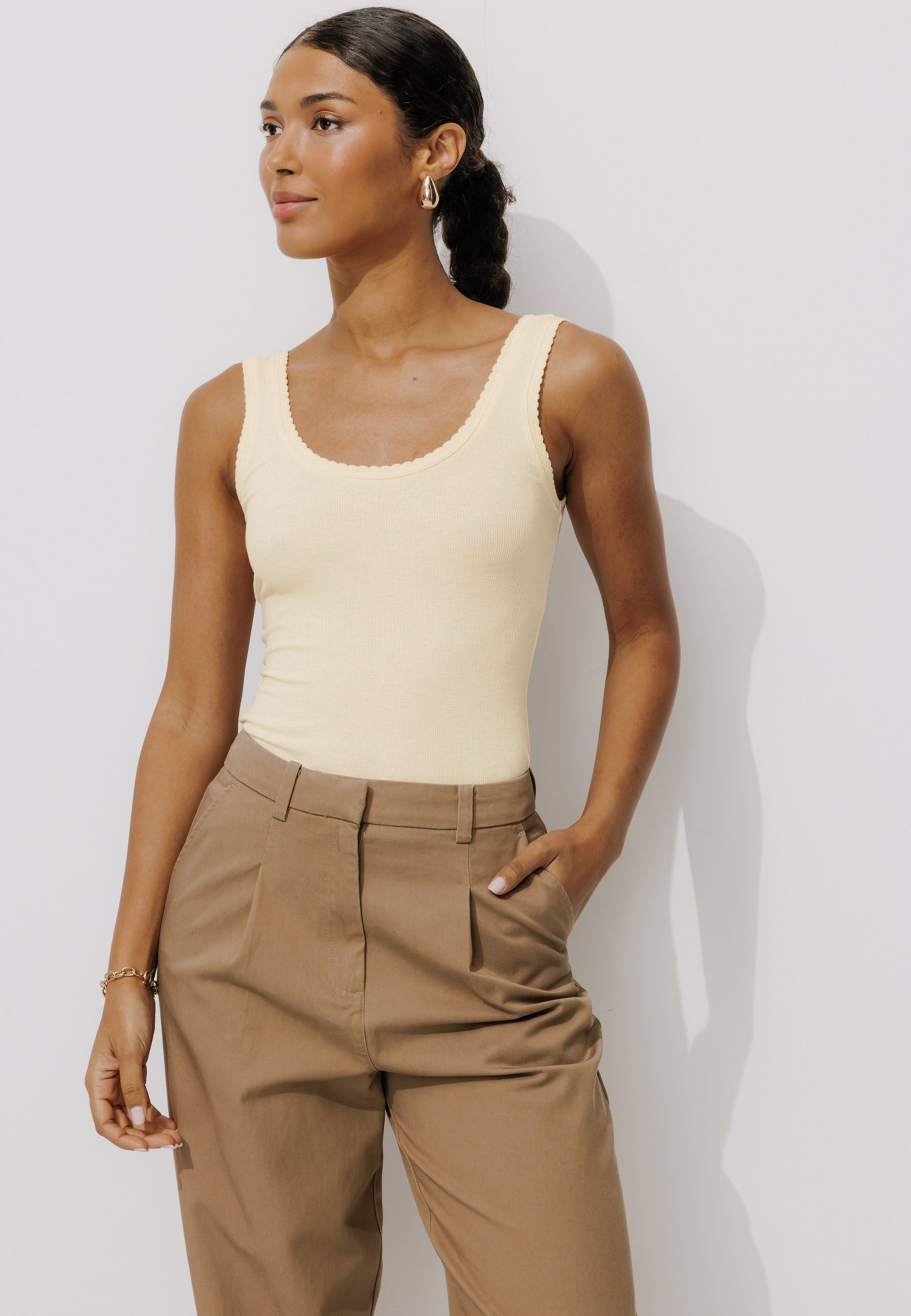 CHALEUREUSEMENT : c'est une matière douce et réconfortante en jersey côtelé léger ! Ce top à bretelles protège du froid, retient la chaleur corporelle, laisse respirer la peau, ne se froisse pas et épouse les formes tout en souplesse. Coupe près du corps. Encolure arrondie devant et dos. Finition picot. Ce top femme contient de la viscose issue de pulpe de bois provenant de forêts gérées.