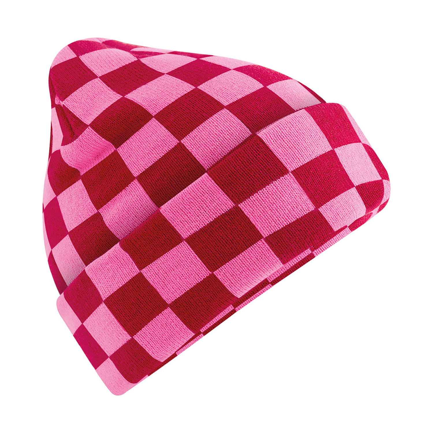 Beechfield - Bonnet motif/style damier (Rouge classique / Vrai rose)