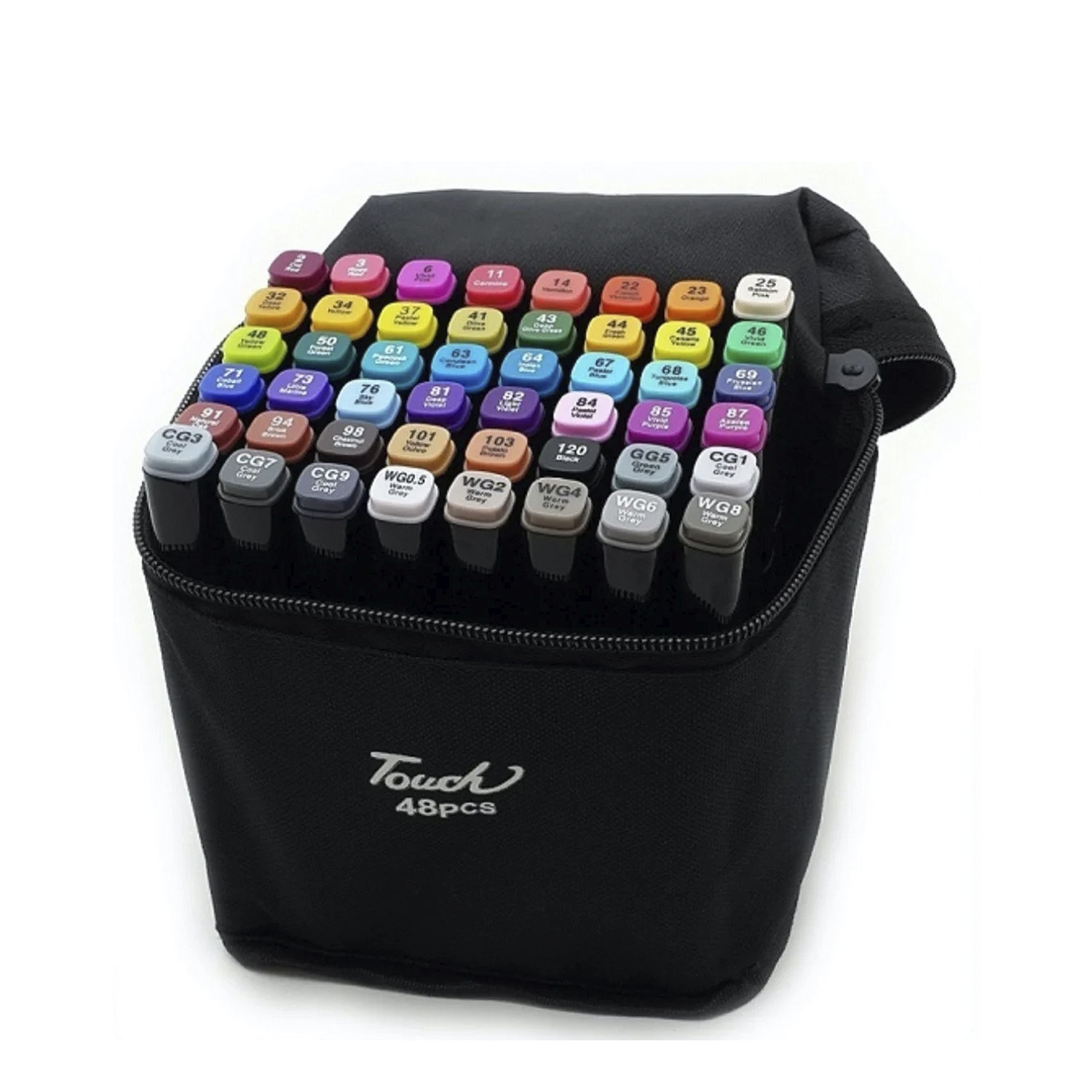 Ensemble de 48 marqueurs de couleurs variées. Double pointe : fine et large dans le même marqueur.