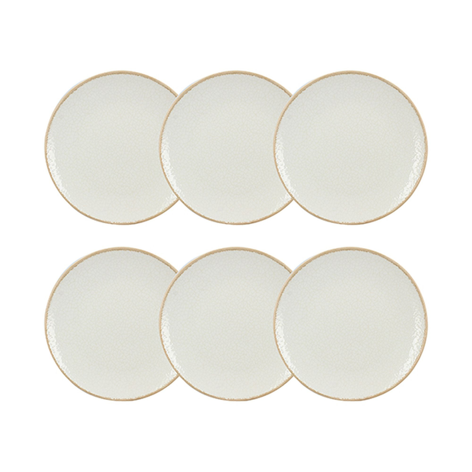 Lot de 6 assiettes plates en porcelaine blanche et liseré beige 27cm NUANCE