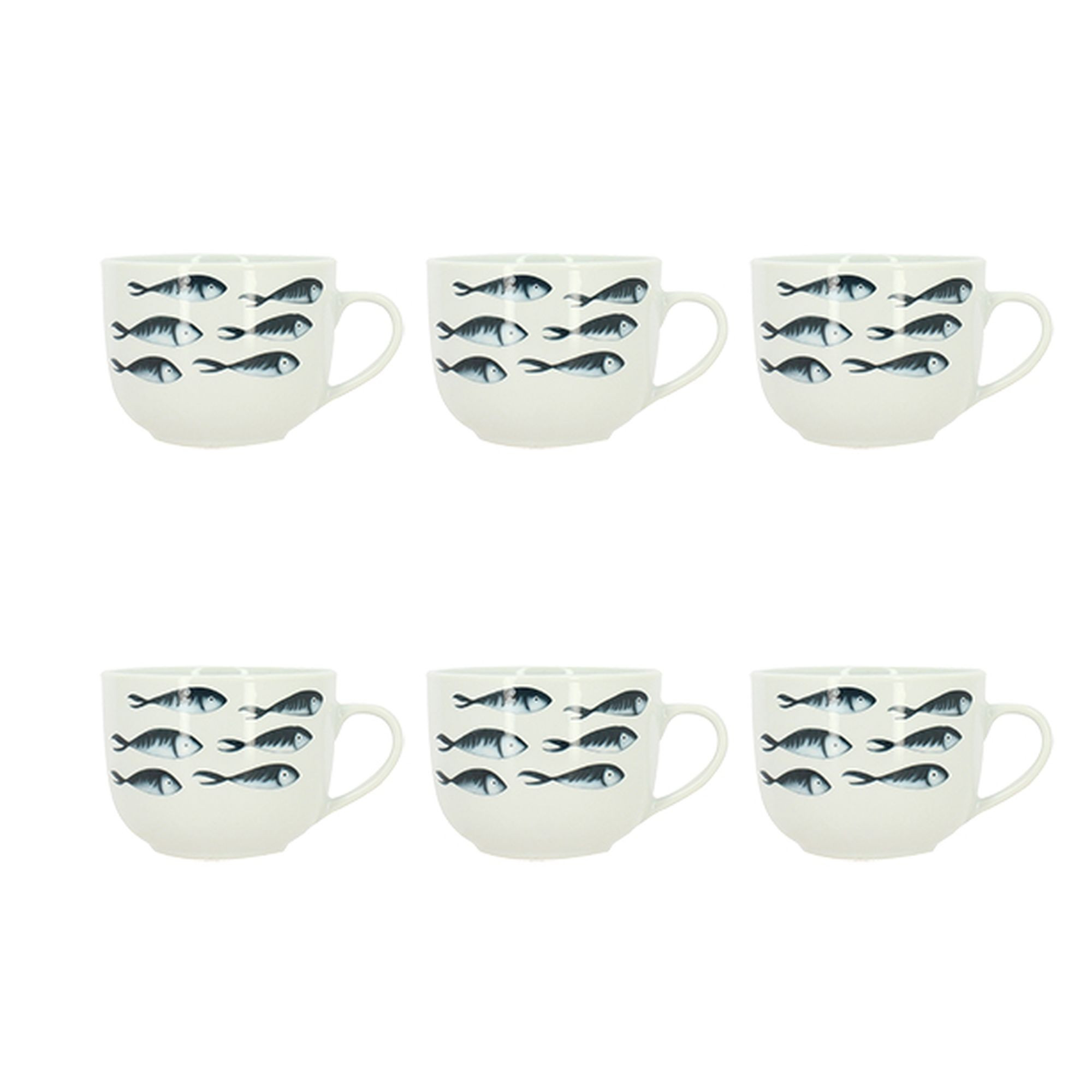 Lot de 6 jumbos 48cl en grès porcelaine blanc et motif poisson PESCARE