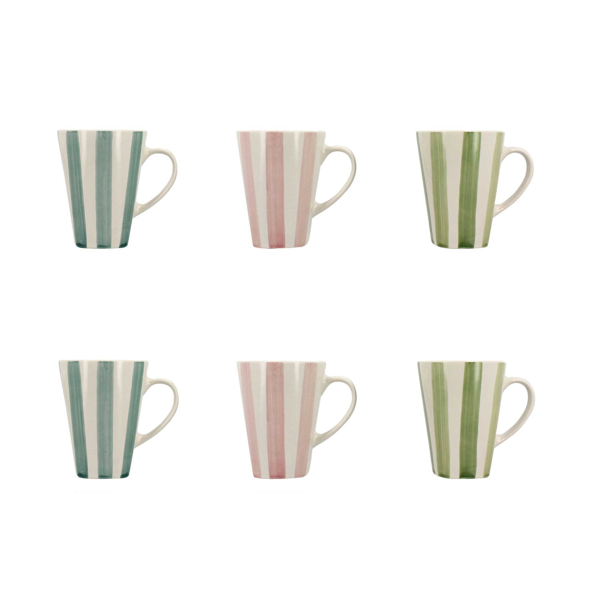 Lot de 6 mugs 36cl en grès blanc et rayures colorées ARLEQUIN