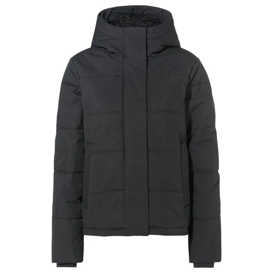 Le froid peut bien s'imposer : cette veste d'hiver femme légère et isolante thermique permet d'affronter les températures glaciales en ville. L'isolation PrimaLoft® Rise haut de gamme retient la chaleur corporelle. Les bordures côtelées longues et douces aux manches munies de passe-pouces, la taille dotée d'un cordon de serrage et la capuche réglable de la veste d'hiver femme avec sa belle doublure en laine repoussent efficacement le vent et le froid. Autre détail pratique : la poche intérieure est également accessible à travers la veste fermée. Deux poches en biais zippées réchauffent les doigts et permettent de conserver des clés et des mouchoirs en toute sécurité. Si le zip frontal ne fonctionne plus correctement, il est très aisé de le remplacer de façon à pouvoir profiter de nombreuses années de la veste d'hiver pour femme Coreway. Elle est de plus apprêtée avec la finition écologique, déperlante et antisalissures Eco Finish sans fluorocarbures (PFC) pour affronter sans problème une pluie fine. Le label Green Shape de VAUDE garantit un produit écologique, fonctionnel et fabriqué dans des matériaux durables. En tant que membre Leader de l'organisme indépendant Fair Wear, VAUDE s'engage en faveur de conditions de travail et de salaires équitables. _x000D_ Caractéristiques _x000D_ Veste d'hiver très chaude et urbaine pour femme doublure en laine douce dans la capuche poignets longs avec passe-pouces matière principale et matelassage fabriqués en polyester recyclé _x000D_ Composition _x000D_ Tissu principal - Matériel: 100% Polyester (recyclé); Couche: 100% Polyuréthane, Doublure capuche : 49% Polyacrylique, 30% Polyester (recyclé), 21% Laine, Doublure : 100% Polyamide (recyclé), Remplissage : 100% Polyester (recyclé), PrimaLoft® Black Insulation Rise 170g/m² _x000D_ Plus produit _x000D_ ouaté _x000D_ capuche montée et réglable en largeur _x000D_ fermeture éclair avec rabat intérieur et extérieur sur le devant _x000D_ avec zip facilement réparable _x000D_ 2 poches frontales avec fermeture éclair _x000D_ ouaté, capuche montée et réglable en largeur, fermeture éclair avec rabat intérieur et extérieur sur le devant, avec zip facilement réparable, 2 poches frontales avec fermeture éclair, bords côtes à l'ourlet de manche, avec ouverture pour le pouce, cordon à la ceinture réglable par les poches _x000D_ _x000D_ Aucun nettoyage chimique; Lavage délicat en machine à 30°C; Ne pas javelliser; Ne pas repasser; Séchage en machine - cycle doux