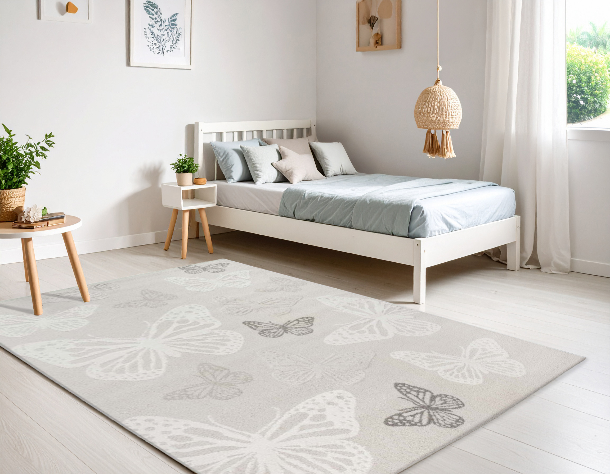 Tapis Jungle Kids chambre enfant, effet 3D, Motif papillon, Crème, 120 x 170 cm