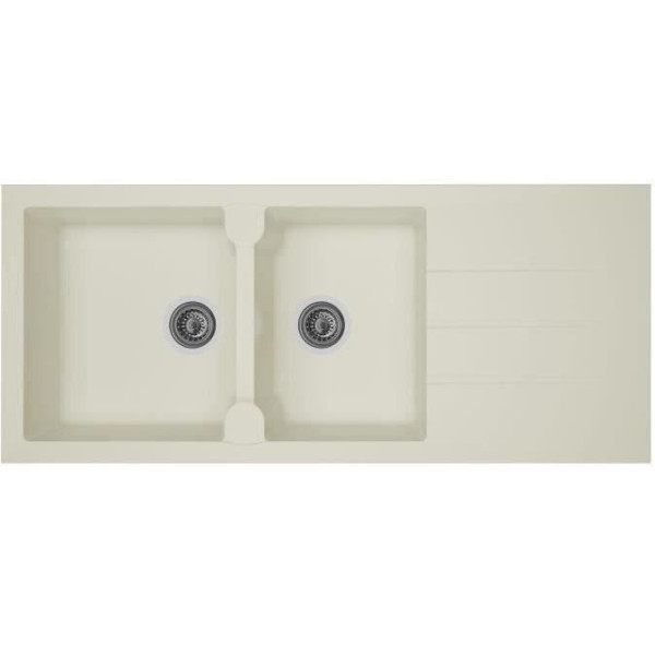 STRADOUR Evier cuisine a encastrer 2 bacs + 1 égouttoir Aloa - Résine - 116 x 50 cm - Blanc