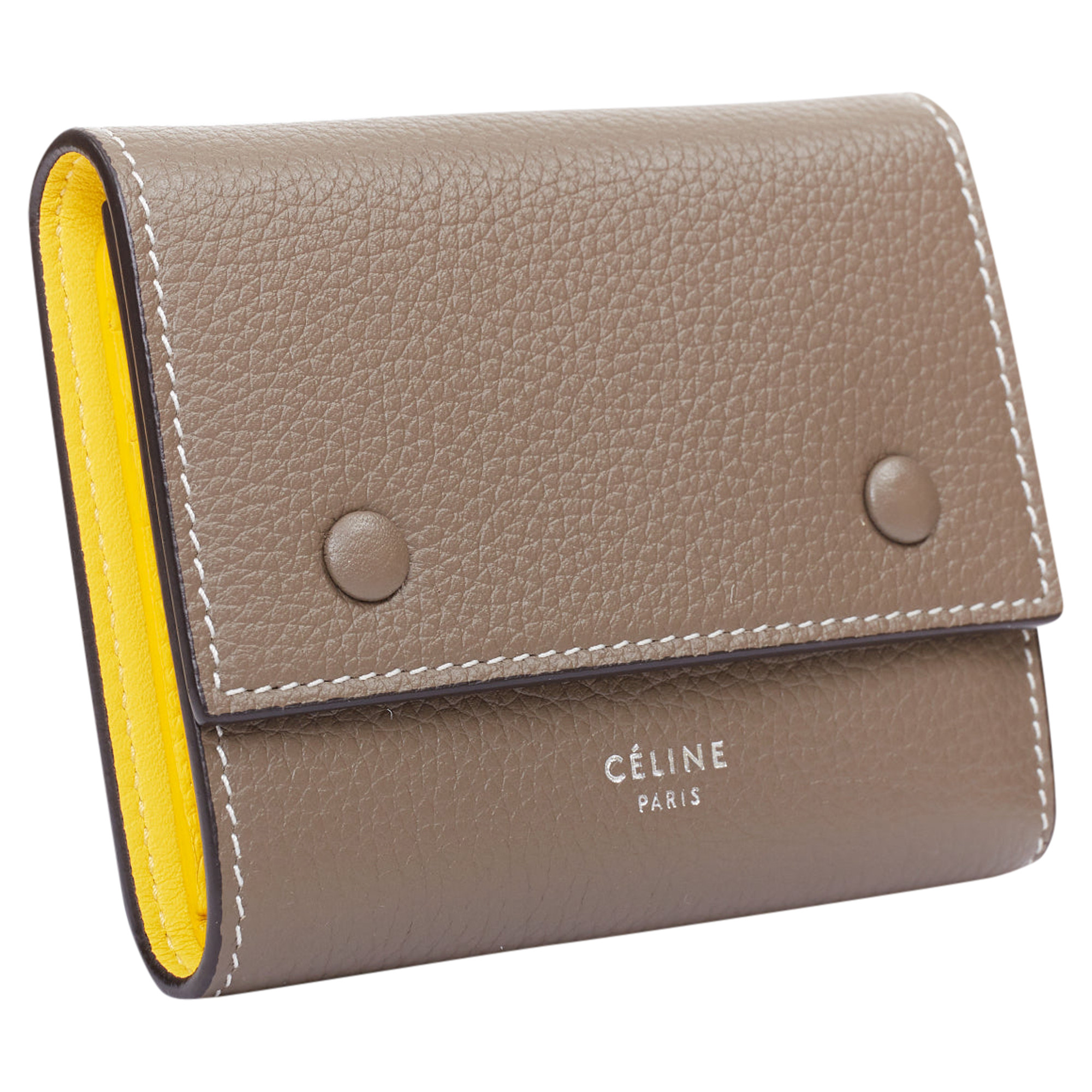 CELINE Portefeuille compact Dune à trois volets en cuir de veau foulonné doublé jaune