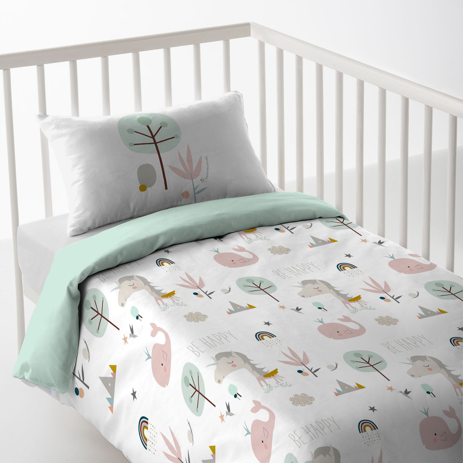 Haciendo el Indio - Housse de Couette Imprimée Enfant - Coton - Housse de couette + 1 Taie d’Oreiller - Maxiberceau 80 - Rainbowland