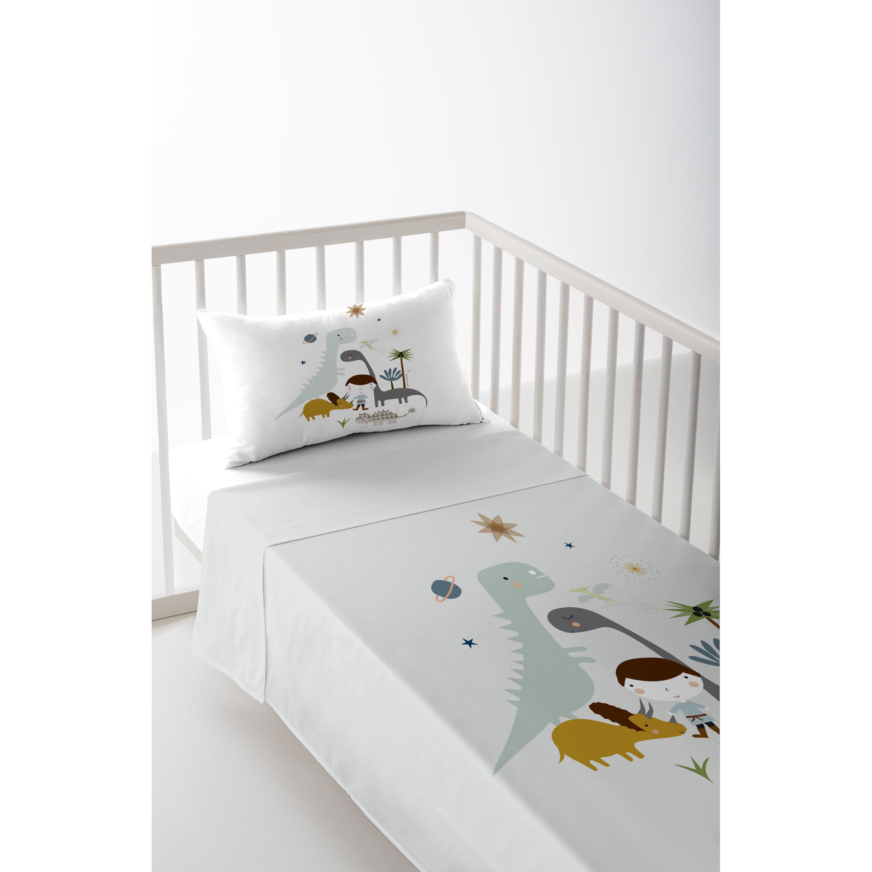 Haciendo el Indio - Parure de Draps Imprimés - Enfant - 100% Coton - Drap Plat + 1 Taie d’Oreiller - Berceau 60 - DINOS
