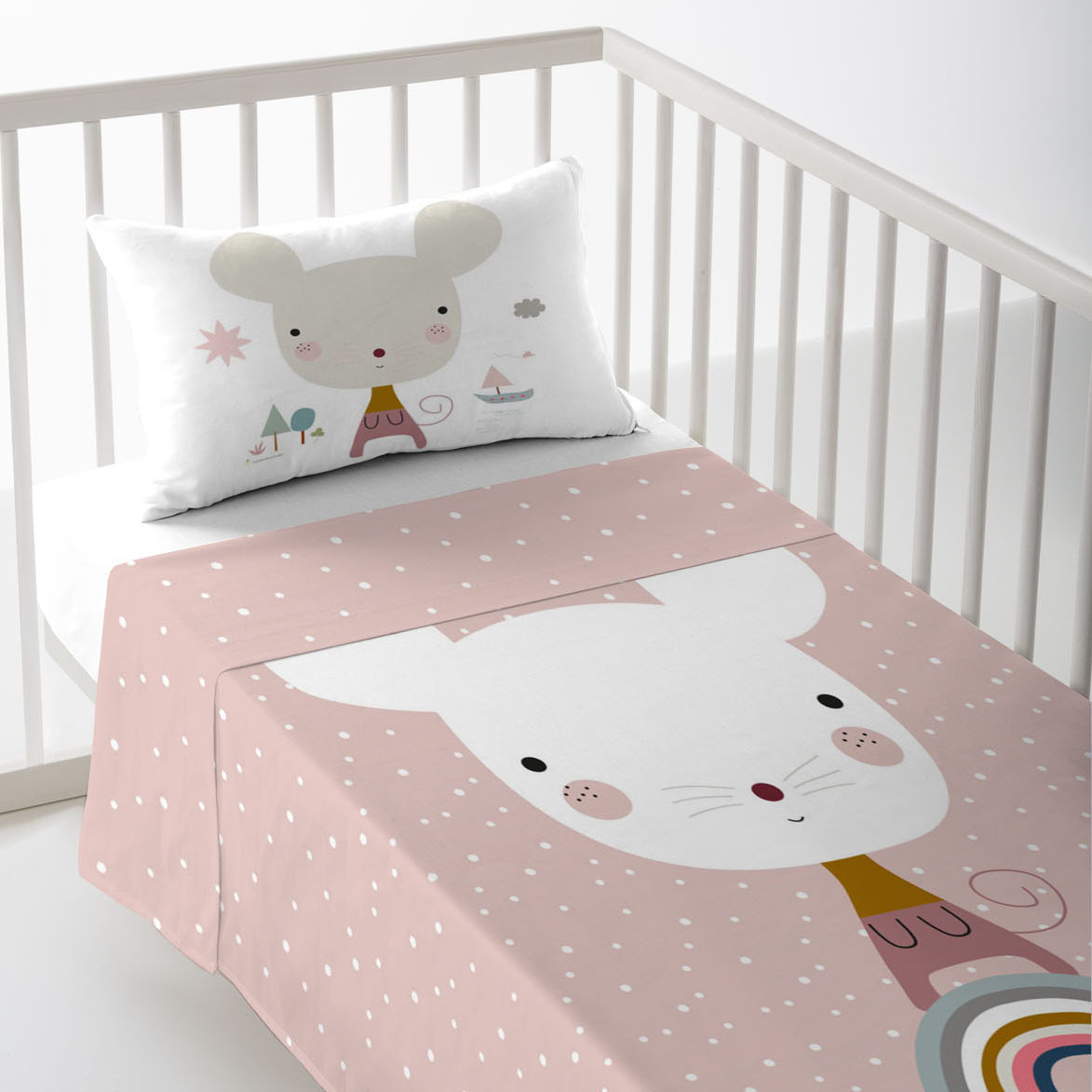 Haciendo el Indio - Parure de Draps Imprimés - Enfant - 100% Coton - Drap Plat + 1 Taie d’Oreiller - Berceau 60 - SUSANITA ROSA
