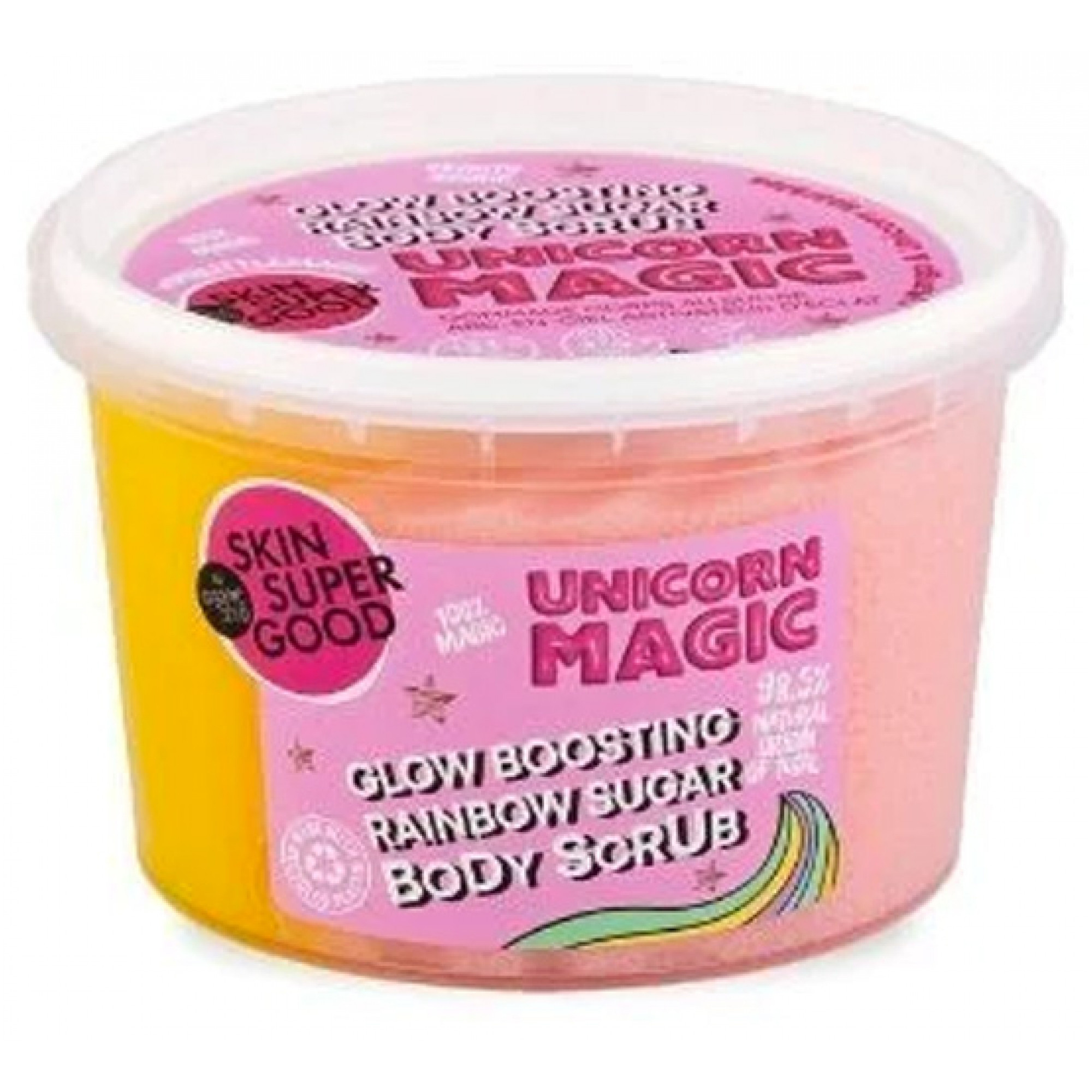 Le gommage corps arc-en-ciel au sucre Unicorn Magic au sucre va rendre votre routine de soins de la peau plus agréable. Il laisse un un effet doux, hydraté et frais et augmente la circulation et repulpe la peau.