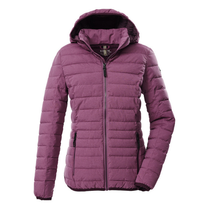 La doudoune femme slim de G.I.G.A. DX au style city intemporel est coupe-vent et déperlant avec une colonne d'eau de 8 000 mm. Grâce à son rembourrage léger, elle est idéale pour la mi-saison et l'automne. La capuche protège par tous les temps. L'ourlet et les poignets sont élastiques pour un bon ajustement. Les deux poches latérales peuvent se fermer avec des zips, pour ne rien perdre. La fermeture éclair avant est dotée d'un protège-menton pratique. Cette veste a été imperméabilisée sans PFAS et fabriquée en partie à partir de matériaux recyclés. - Doudoune femme fonctionnelle avec capuche - Déperlant, 8 000 mm de colonne d'eau - Coupe slim, ourlet et poignets élastiques - Imprégnation sans PFAS, en partie en matériau recyclé - Poches avec zips, fermeture éclair avec protège-menton - Remplissage léger - idéal pour l'automne