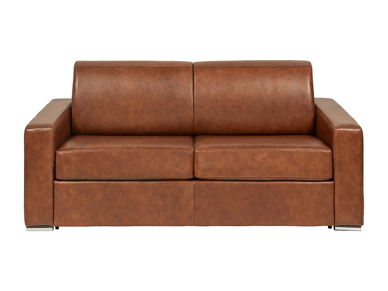 Information sur l'offre : Canapé 4 places convertible express en cuir vintage caramel - Couchage 160 cm - Matelas 14 cm. Assise déhoussable. Dimensions : L216 x P94 x H85cm. CALITO
