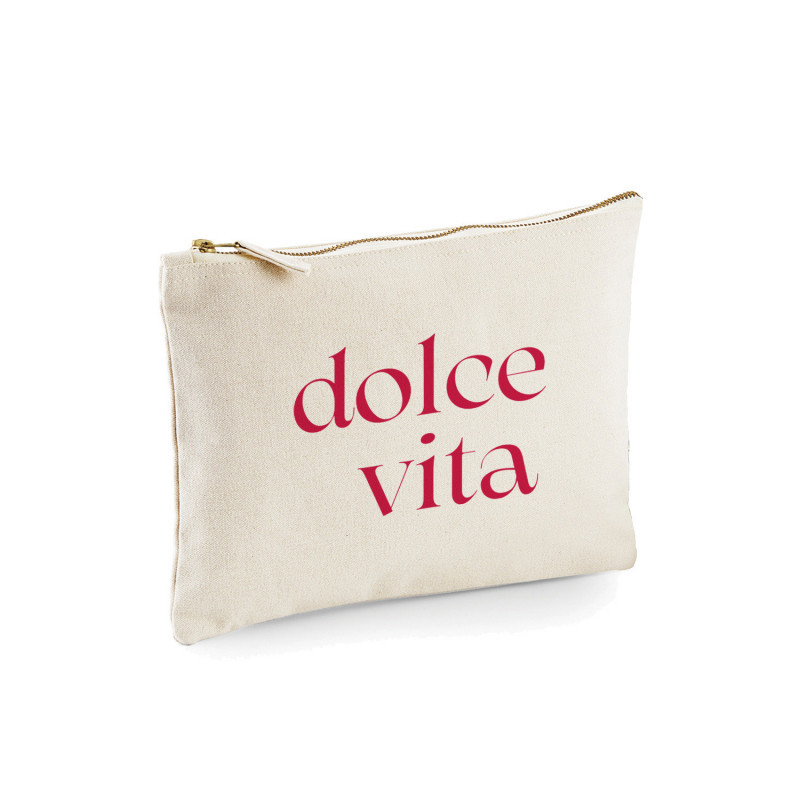 Trousse Naturel de la marque Ma Petite Tribu. Un cadeau parfait pour Mots. Le motif Dolce Vita Rouge est imprimé en France dans notre atelier à Toulouse sur un Trousse de qualité très confortable 100% coton (toile biologique), tissu épais de qualité supérieure imprimé avec amour en France.