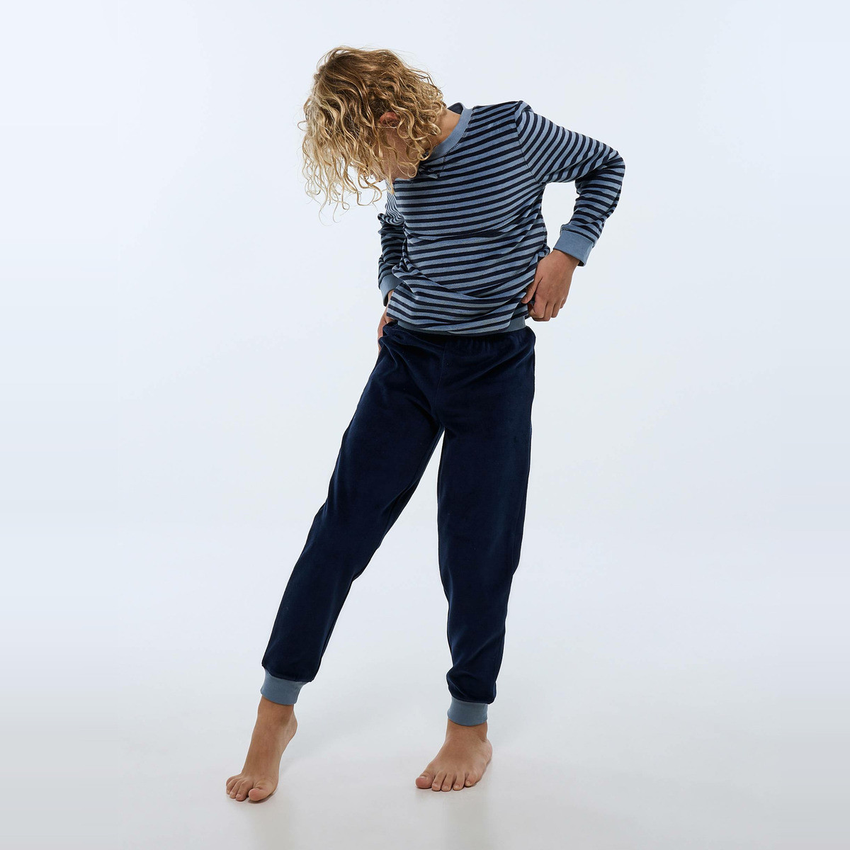 Pyjama velours manches longues marinière contient du coton BIO GOTS - MONOPRIX