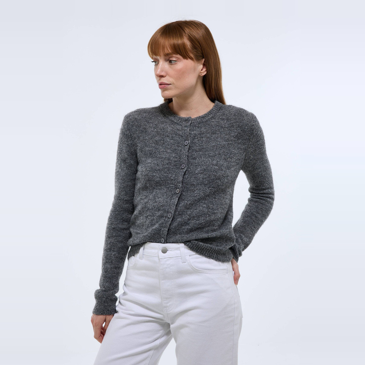 Cardigan col rond uni contenant de l'alpaga - MONOPRIX