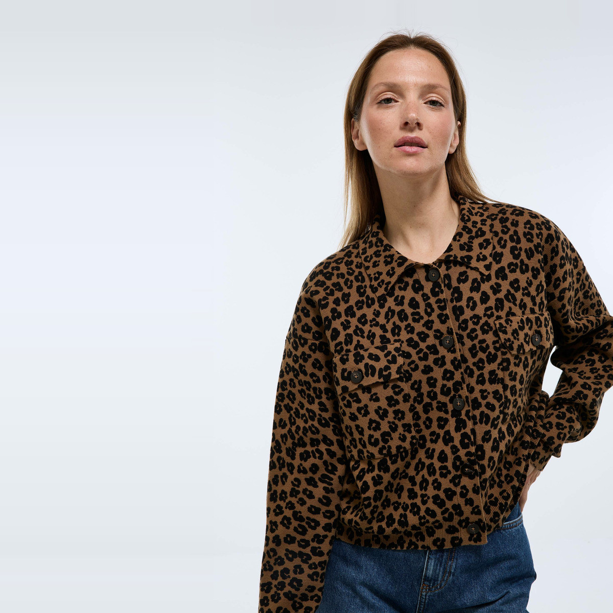 Veste en coton maille milano, imprimée léopard - MONOPRIX