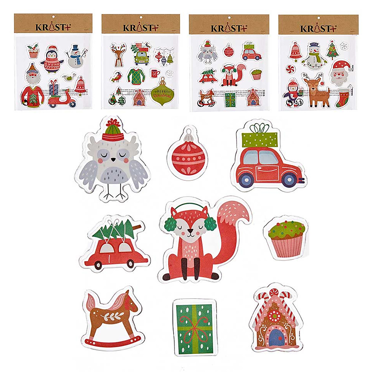 SET 9 PIÈCES. AUTOCOLLANTS EN GEL NOËL.