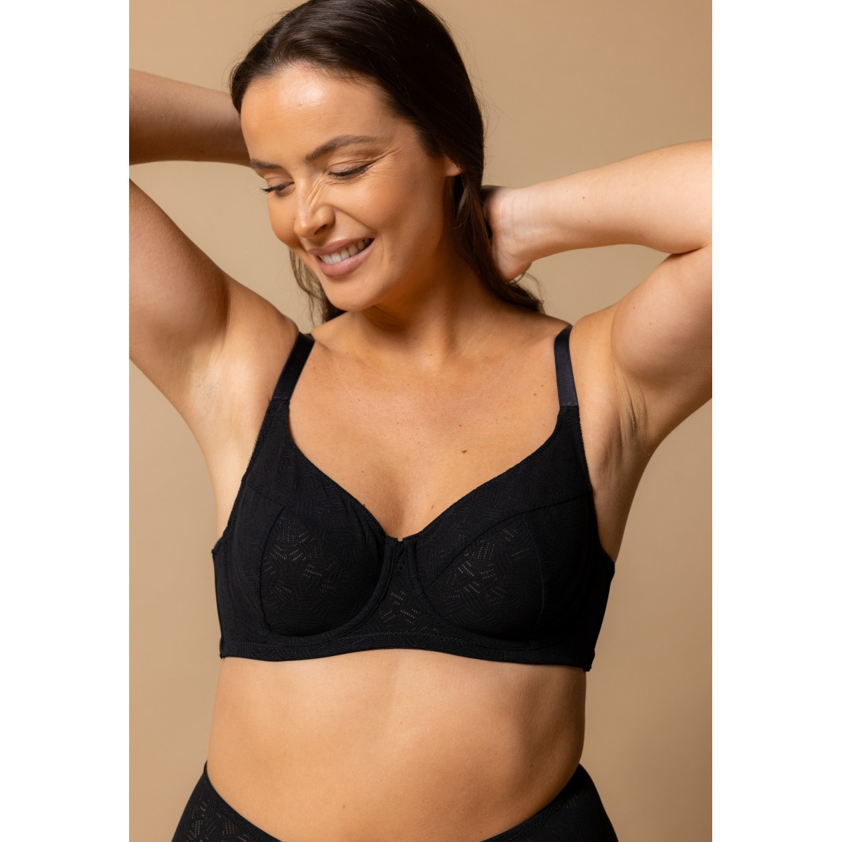Découvrez un basique de la lingerie travaillé de manière plus sensuelle pour se sentir confortable au quotidien. Notre soutien-gorge Aloès noir profond se différencie d'une fine dentelle géométrique qui impose son côté chic. Optez pour sa couleur noire raffinée.Ce soutien-gorge assure un très bon maintien jusqu'au bonnet F grâce à sa construction en 3-parties et aux baleines latérales doublées en tulle de maintien.Laura porte du 95C.Photos non contractuelles : Les images sont retouchées pour sublimer les couleurs et la luminosité, mais nous ne retouchons jamais les corps. Les silhouettes des modèles restent naturelles et authentiques.