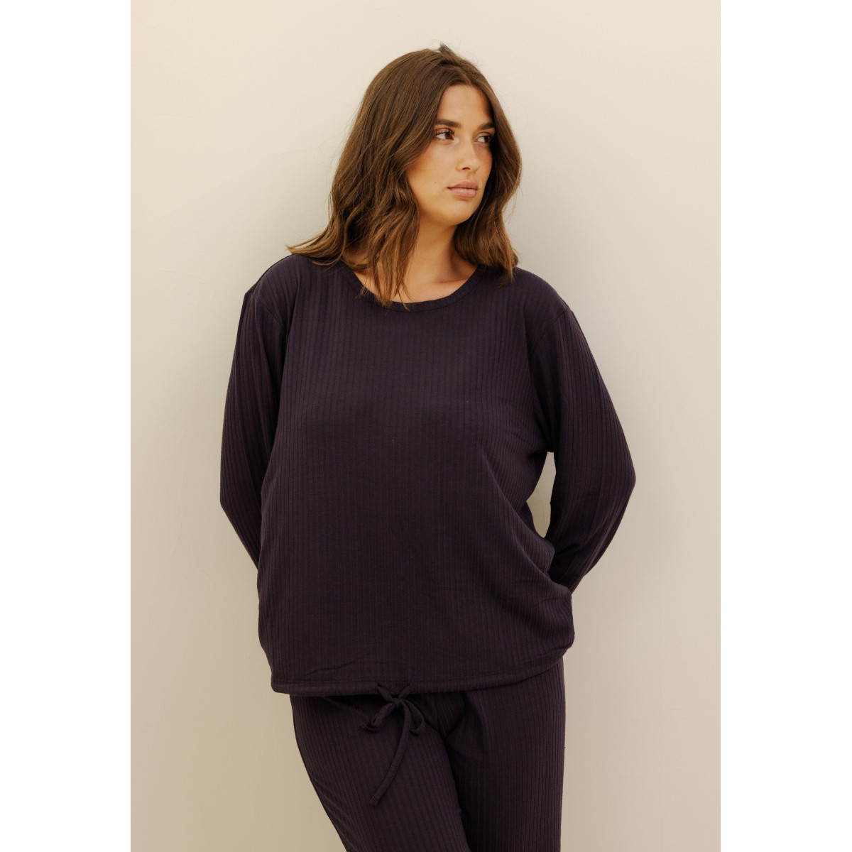 Voici le top idéal pour des nuits délicates. Confort et fluide, on adore cette couleur figue. Associez-le facilement avec le bas de pyjama de la même collection pour un ensemble à la fois confortable et tout en douceur. Manches longues. Col rond. Bas resseré avec un noeud. Maille côtelée. Pauline porte la taille 40/42. Photos non contractuelles : Les images sont retouchées pour sublimer les couleurs et la luminosité, mais nous ne retouchons jamais les corps. Les silhouettes des modèles restent naturelles et authentiques.