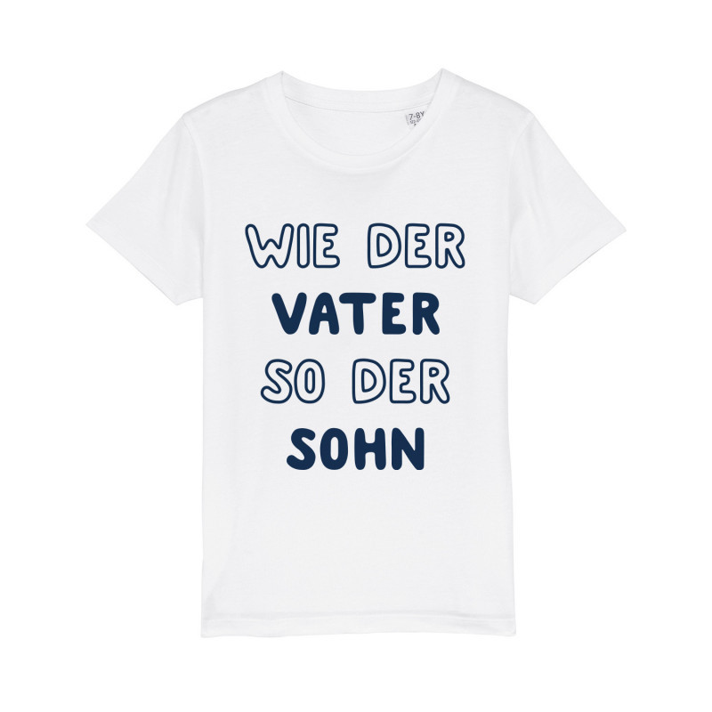 Tshirt Blanc de la marque Ma Petite Tribu. Un cadeau parfait pour . Le motif Wie Der Vater, So Der Sohn est imprimé en France dans notre atelier à Toulouse sur un Tshirt de qualité très confortable 100% coton peigné issu de l'agriculture biologique enrichi d'un traitement d'enzyme pour un toucher tout doux. Certifié OCS (Organic Content Standard) et Oeko Tex Standard 100. T-shirt de qualité imprimé avec amour en France.
