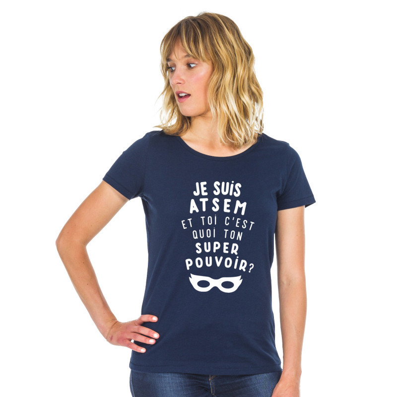 Ma Petite Tribu - T-shirt Femme - JE SUIS ATSEM ET TOI C'EST QUOI TON SUPER POUVOIR ?