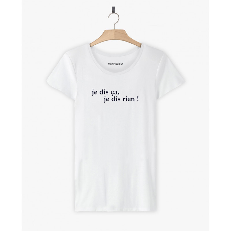 Information sur l'offre : T-shirt Femme - JE DIS CA JE DIS RIEN - Si vous souhaitez laver votre tshirt je dis ca je dis rien en machine, nous vous recommandons de sélectionner une température de 30°c maximum, de retourner votre tshirt avant le lavage dans le but de préserver les couleurs du motif je dis ca je dis rien le plus longtemps possible et d'éviter d'utiliser un sèche linge qui a tendance à user prématurément nos produits. enfin, si vous souhaitez repasser votre tshirt nous vous recommandons de privillégier le repassage à l'envers.
