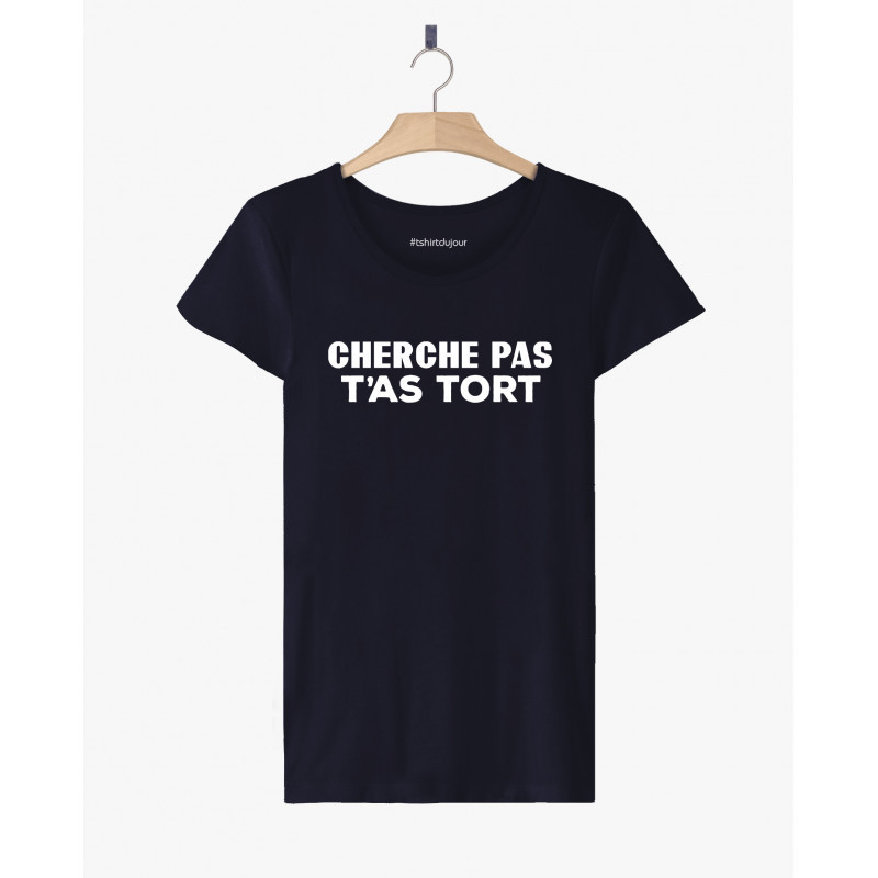 T-shirt Femme - CHERCHE PAS T'AS TORT - Si vous souhaitez laver votre tshirt cherche pas t'as tort en machine, nous vous recommandons de sélectionner une température de 30°c maximum, de retourner votre tshirt avant le lavage dans le but de préserver les couleurs du motif cherche pas t'as tort le plus longtemps possible et d'éviter d'utiliser un sèche linge qui a tendance à user prématurément nos produits. enfin, si vous souhaitez repasser votre tshirt nous vous recommandons de privillégier le repassage à l'envers.