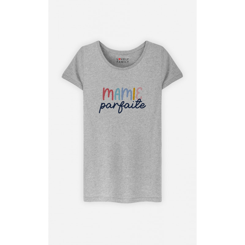 Tshirt Blanc de la marque Lovely Family. Un cadeau parfait pour Mamie. Le motif Mamie Parfaite est imprimé en France dans notre atelier à Toulouse sur un Tshirt de qualité très confortable 100% coton peigné issu de l'agriculture biologique enrichi d'un traitement d'enzyme pour un toucher tout doux. Certifié OCS (Organic Content Standard) et Oeko Tex Standard 100. T-shirt de qualité imprimé avec amour en France.