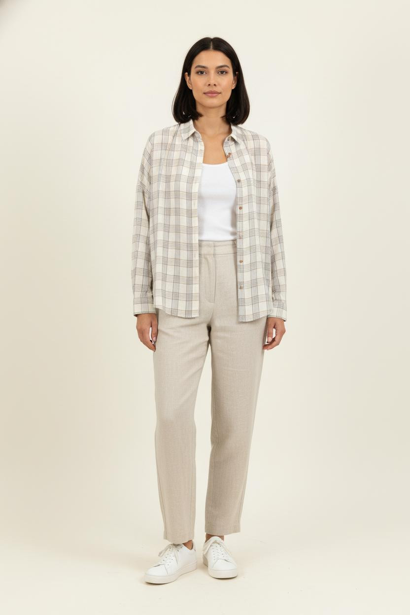 Chemise à Carreaux Blanche et Beige - Taille S/36 - Sessùn