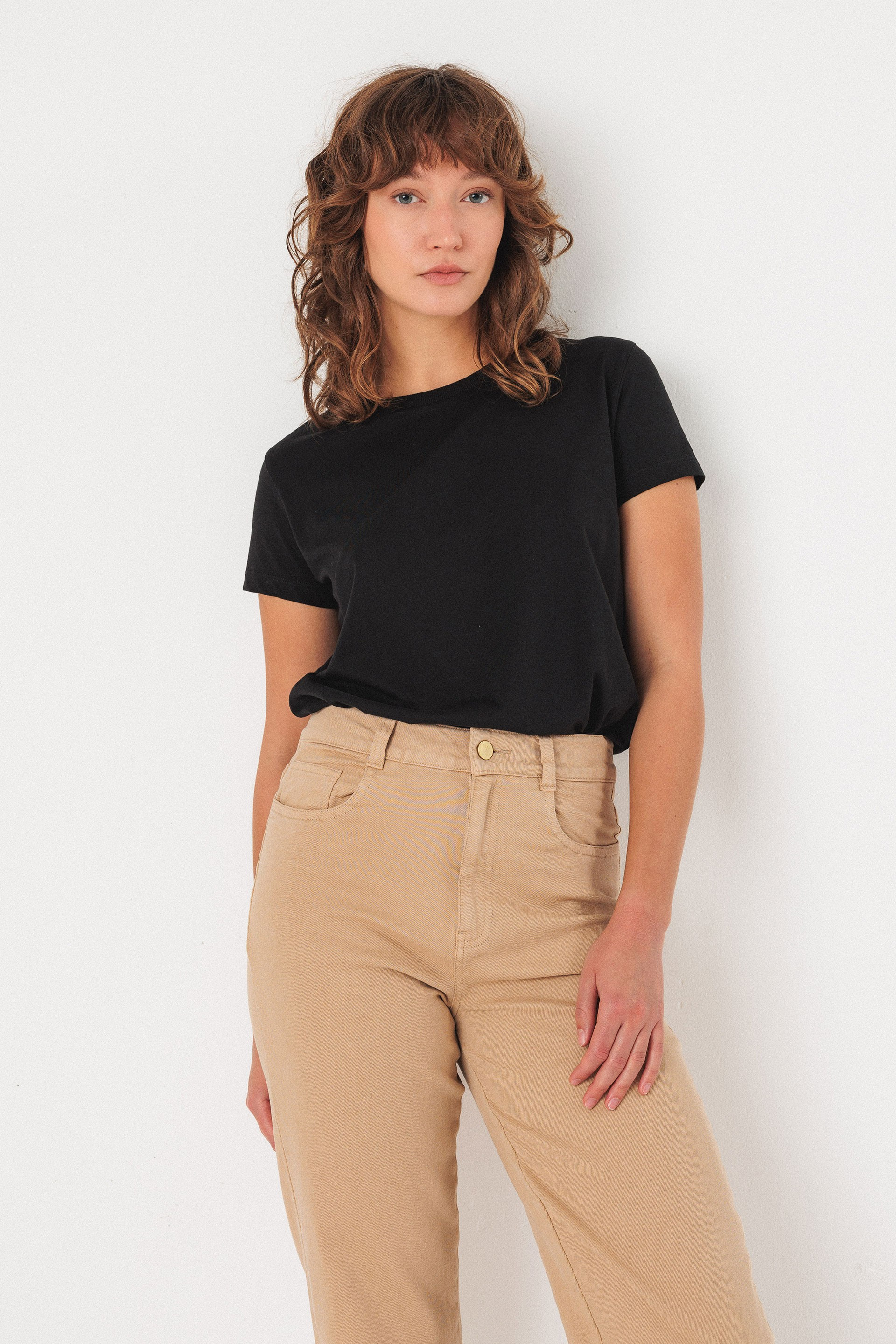 T-shirt coupe droite à manches courtes avec encolure côtelée. 100% coton biologique. Lavage à froid, cycle délicat. Ne pas repasser. Ne pas blanchir. Ne pas nettoyer à sec. Ne pas sécher en machine. Laver à l'envers. Laver avec des couleurs similaires.