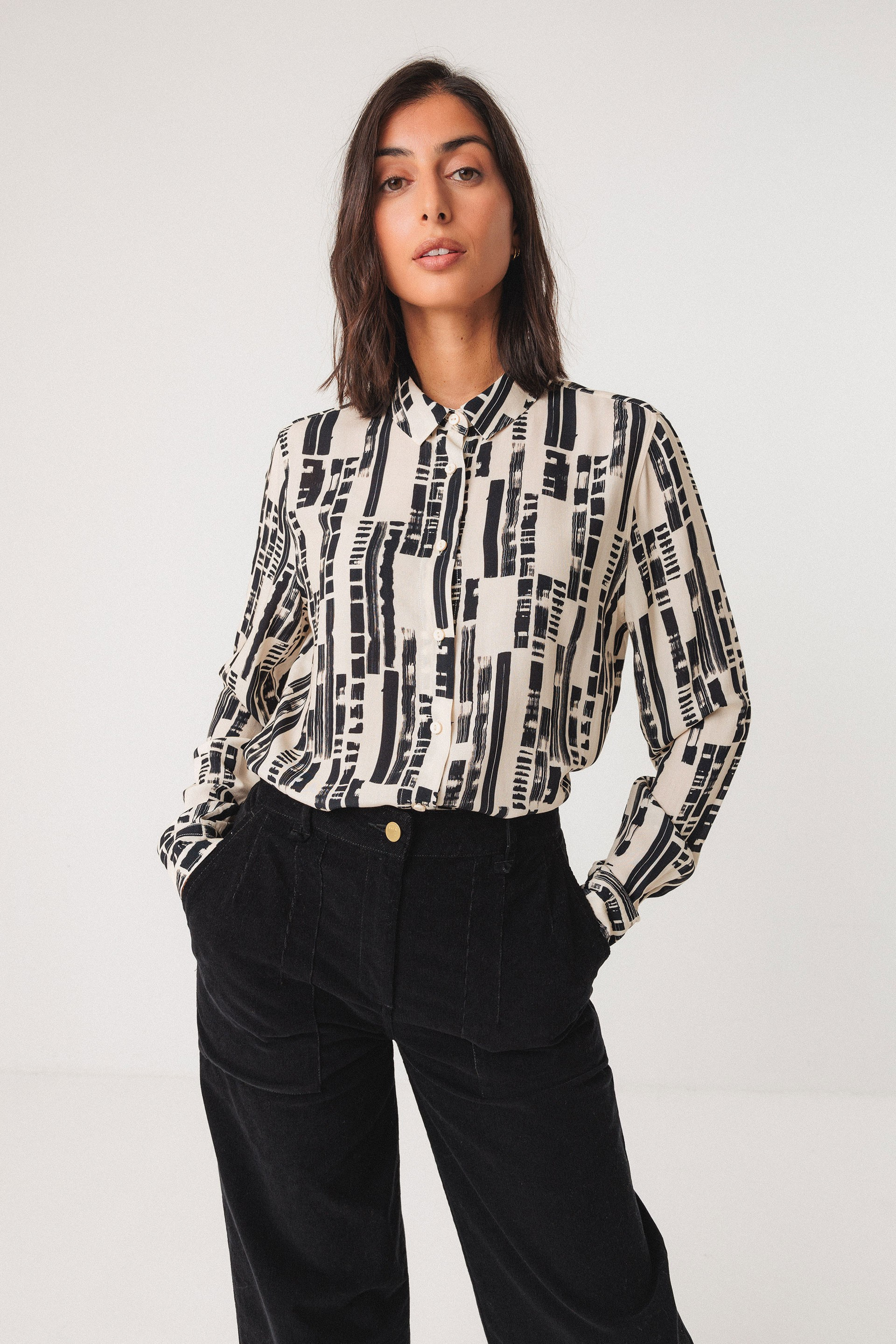 Chemise coupe droite avec col classique et manches longues avec fermeture boutonnée sur le devant. 100 % Lenzing™ Ecovero™. Lavage à froid, cycle délicat. Ne pas repasser. Ne pas blanchir. Ne pas nettoyer à sec. Ne pas sécher en machine. Laver à l'envers. Laver avec des couleurs similaires.