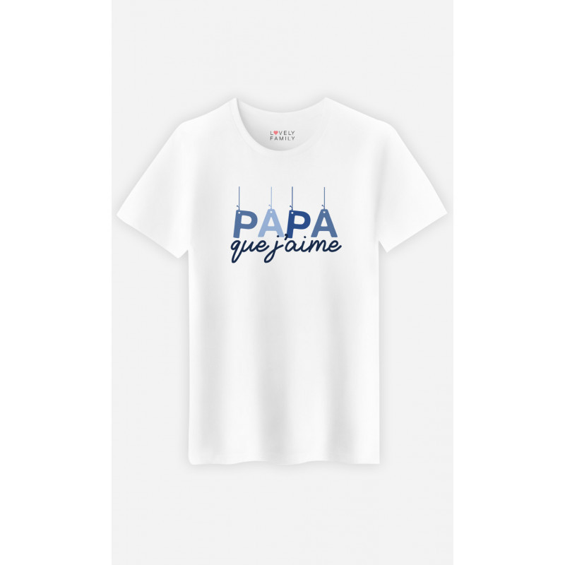 Tshirt Blanc de la marque Lovely Family. Un cadeau parfait pour Papa. Le motif Papa Que J'Aime est imprimé en France dans notre atelier à Toulouse sur un Tshirt de qualité très confortable 100% coton peigné issu de l'agriculture biologique enrichi d'un traitement d'enzyme pour un toucher tout doux. Certifié OCS (Organic Content Standard) et Oeko Tex Standard 100. T-shirt de qualité imprimé avec amour en France.