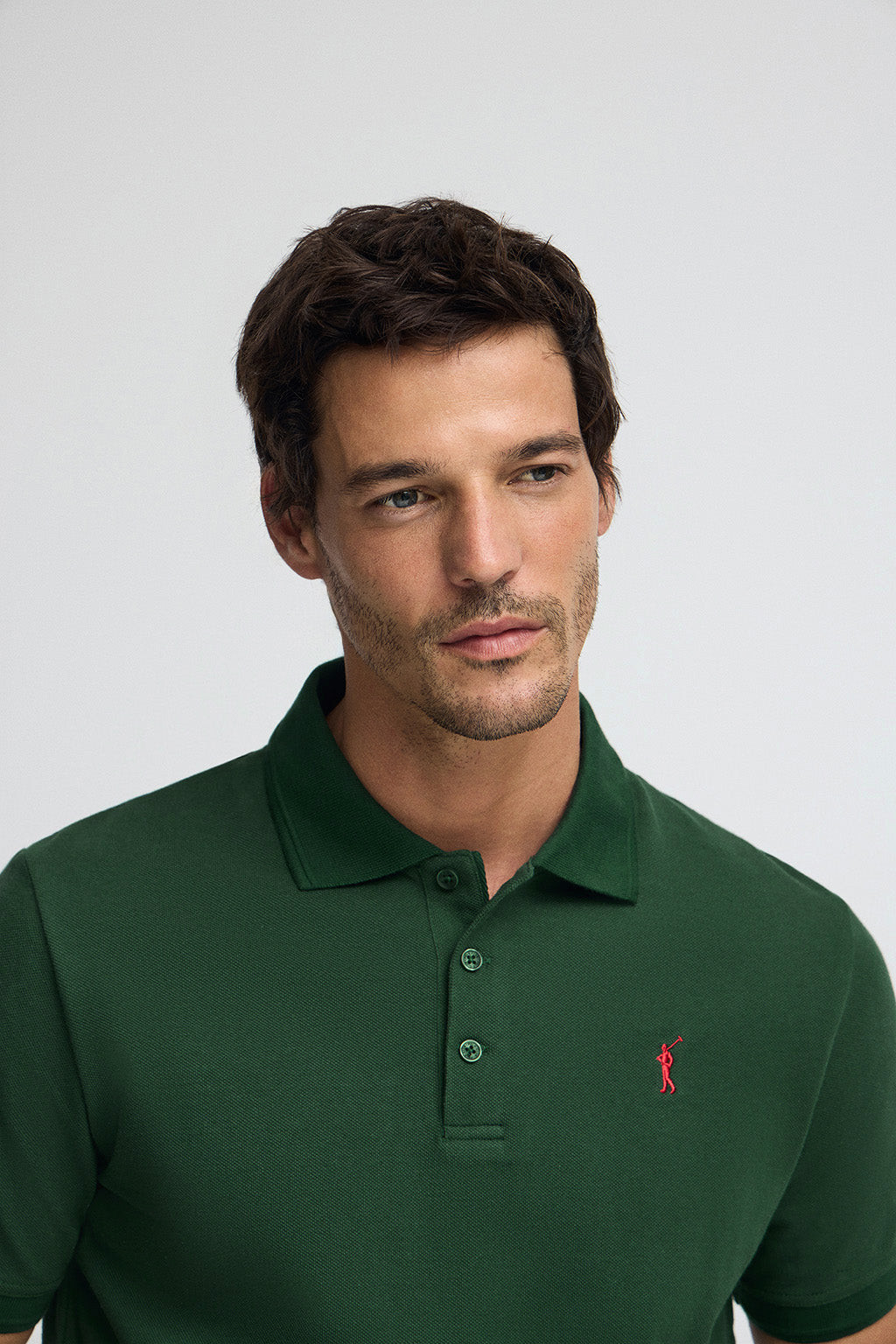 Polo vert bouteille en piqué à logo brodé Rigby Go