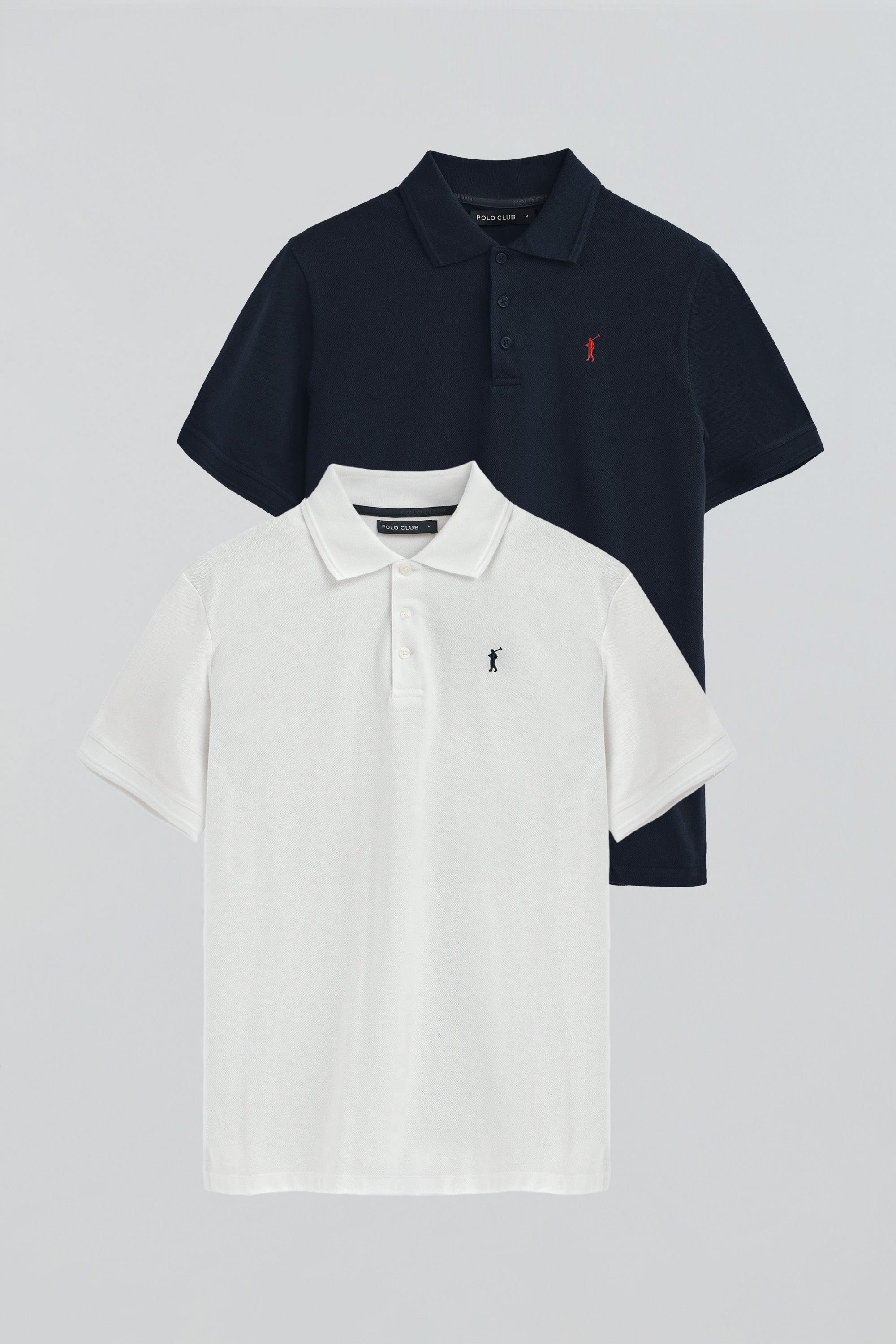 Lot pour homme de deux polos bleu marine et blanc en piqué avec broderie Rigby Go