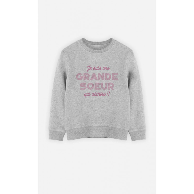 Information sur l'offre : Sweat Gris Chiné de la marque Lovely Family. Un cadeau parfait pour Mes Enfants. Le motif Grande Soeur Qui Dechire est imprimé en France dans notre atelier à Toulouse sur un Sweat de qualité très confortable 50% coton-50% polyester Molleton gratté à l'intérieur. Sweatshirt imprimé avec amour en France.
