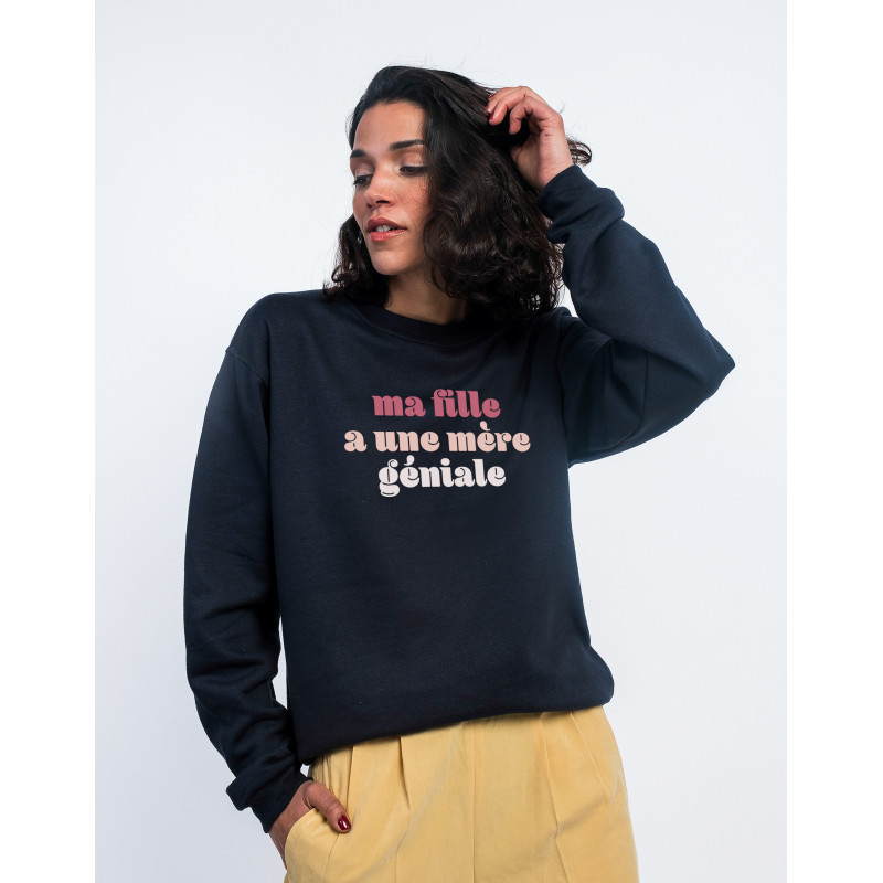 Information sur l'offre : Sweat Gris Chiné de la marque Ma Petite Tribu. Un cadeau parfait pour Maman. Le motif Ma Fille A Une Mère Géniale est imprimé en France dans notre atelier à Toulouse sur un Sweat de qualité très confortable 50% coton-50% polyester Molleton brossé à l'intérieur. Sweatshirt imprimé avec amour en France.