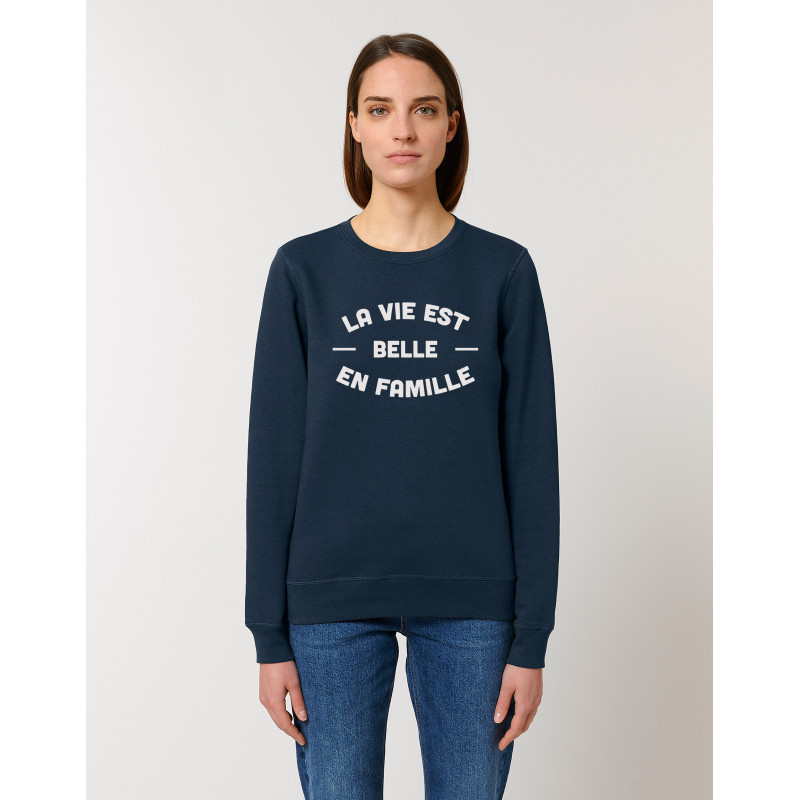 Information sur l'offre : Sweat Vintage White de la marque Ma Petite Tribu. Un cadeau parfait pour . Le motif La Vie Est Belle En Famille 2 Face est imprimé en France dans notre atelier à Toulouse sur un Sweat de qualité très confortable 85% coton bio - 280g/m² - Manches montées Bord en côtes 1x1 sur col, bas de manches et bas de corps Bande de propreté intérieur col en chevron Surpiqûre flatlock sur toutes les coutures Demi-lune à l'intérieur du col dans la matière principale