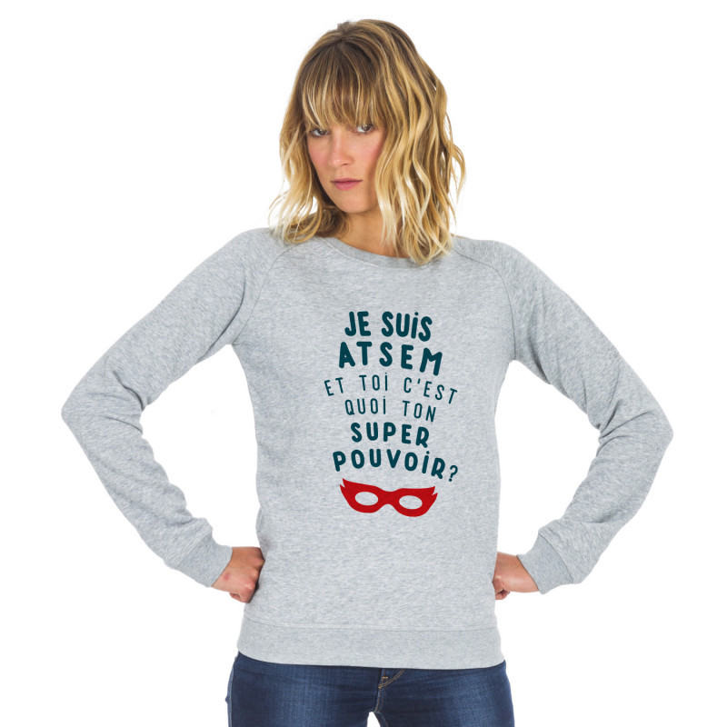 Ma Petite Tribu - Sweat Femme - JE SUIS ATSEM ET TOI C'EST QUOI TON SUPER POUVOIR ?