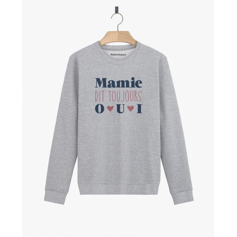 Sweat Femme - MAMIE DIT TOUJOURS OUI - Si vous souhaitez laver votre sweat mamie dit toujours oui en machine, nous vous recommandons de sélectionner une température de 30°c maximum, de retourner votre sweat avant le lavage dans le but de préserver les couleurs du motif mamie dit toujours oui le plus longtemps possible et d'éviter d'utiliser un sèche linge qui a tendance à user prématurément nos produits. enfin, si vous souhaitez repasser votre sweat nous vous recommandons de privillégier le repassage à l'envers.