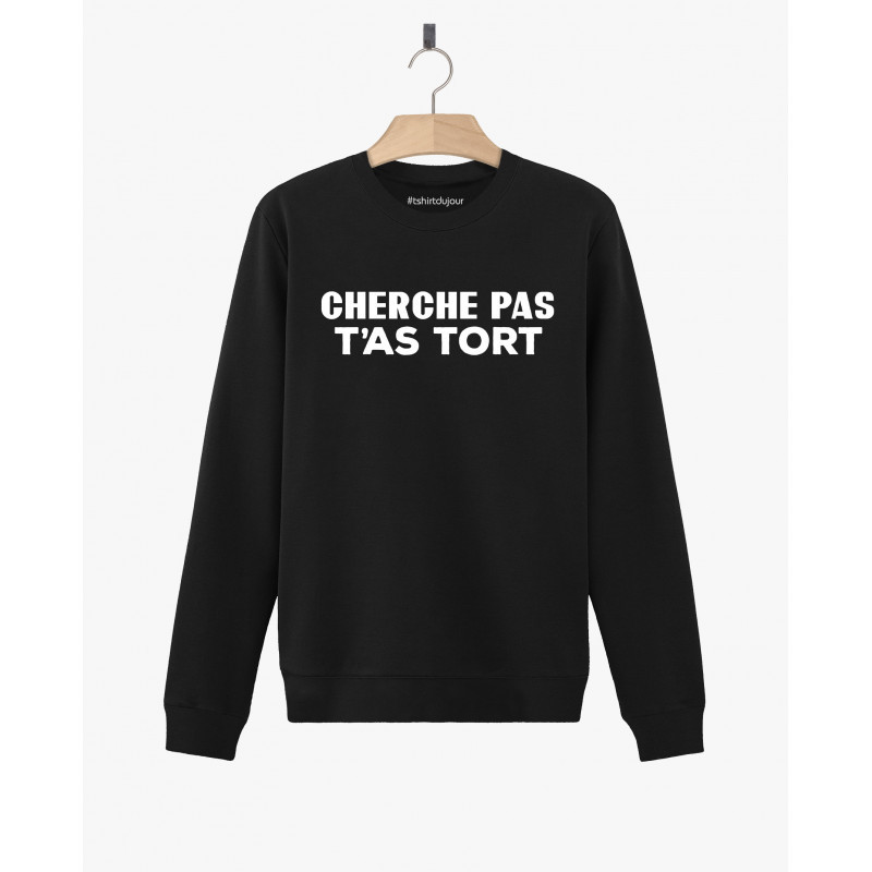 Information sur l'offre : Sweat Femme - CHERCHE PAS T'AS TORT - Si vous souhaitez laver votre sweat cherche pas t'as tort en machine, nous vous recommandons de sélectionner une température de 30°c maximum, de retourner votre sweat avant le lavage dans le but de préserver les couleurs du motif cherche pas t'as tort le plus longtemps possible et d'éviter d'utiliser un sèche linge qui a tendance à user prématurément nos produits. enfin, si vous souhaitez repasser votre sweat nous vous recommandons de privillégier le repassage à l'envers.