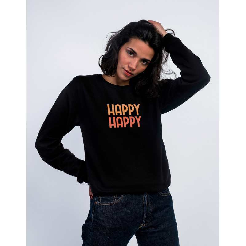 Sweat Gris Chiné de la marque Ma Petite Tribu. Un cadeau parfait pour Mots. Le motif Happy Mpt est imprimé en France dans notre atelier à Toulouse sur un Sweat de qualité très confortable 50% coton-50% polyester Molleton brossé à l'intérieur. Sweatshirt imprimé avec amour en France.