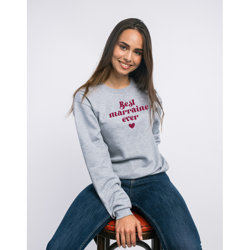 Sweat Gris Chiné de la marque Ma Petite Tribu. Un cadeau parfait pour Marraine. Le motif Best Marraine est imprimé en France dans notre atelier à Toulouse sur un Sweat de qualité très confortable 50% coton-50% polyester Molleton brossé à l'intérieur. Sweatshirt imprimé avec amour en France.
