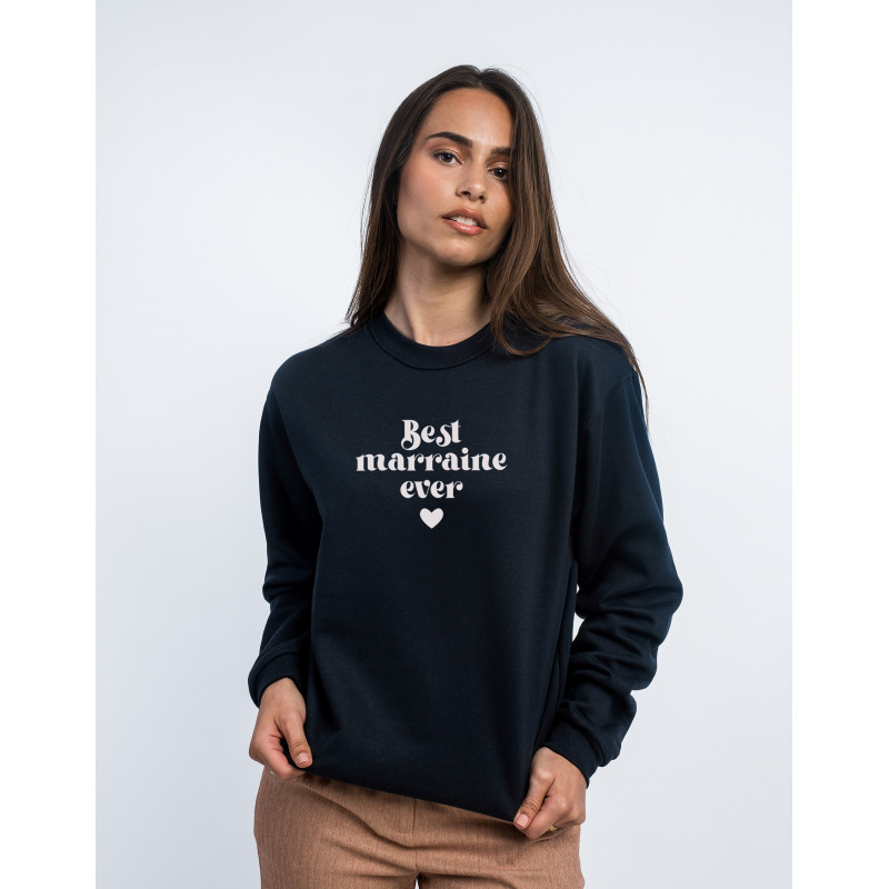 Information sur l'offre : Sweat Gris Chiné de la marque Ma Petite Tribu. Un cadeau parfait pour Marraine. Le motif Best Marraine est imprimé en France dans notre atelier à Toulouse sur un Sweat de qualité très confortable 50% coton-50% polyester Molleton brossé à l'intérieur. Sweatshirt imprimé avec amour en France.