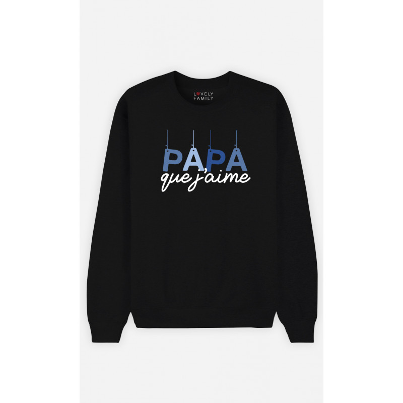 Sweat Gris Chiné de la marque Lovely Family. Un cadeau parfait pour Papa. Le motif Papa Que J'Aime est imprimé en France dans notre atelier à Toulouse sur un Sweat de qualité très confortable 50% coton-50% polyester Molleton brossé à l'intérieur. Sweatshirt imprimé avec amour en France.