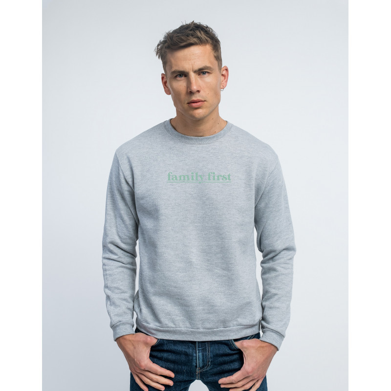 Information sur l'offre : Sweat Gris Chiné de la marque We Are Family. Un cadeau parfait pour . Le motif Family First Vert est imprimé en France dans notre atelier à Toulouse sur un Sweat de qualité très confortable 50% coton-50% polyester Molleton brossé à l'intérieur. Sweatshirt imprimé avec amour en France.