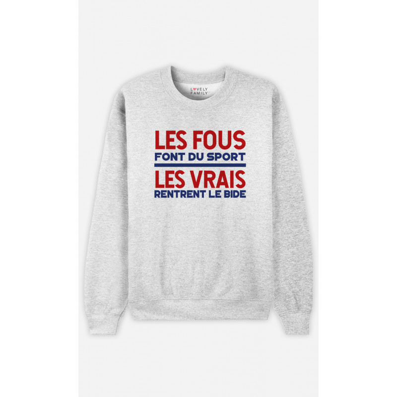 Sweat Gris Chiné de la marque Lovely Family. Un cadeau parfait pour Humour. Le motif Les Vrais Rentrent Le Bide est imprimé en France dans notre atelier à Toulouse sur un Sweat de qualité très confortable 50% coton-50% polyester Molleton brossé à l'intérieur. Sweatshirt imprimé avec amour en France.
