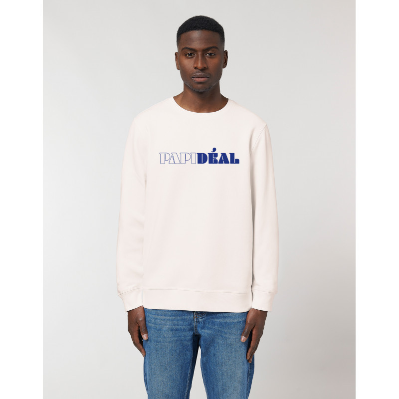 Information sur l'offre : Sweat Vintage White de la marque We Are Family. Un cadeau parfait pour . Le motif Papideal est imprimé en France dans notre atelier à Toulouse sur un Sweat de qualité très confortable 85% coton bio - 280g/m² - Manches montées Bord en côtes 1x1 sur col, bas de manches et bas de corps Bande de propreté intérieur col en chevron Surpiqûre flatlock sur toutes les coutures Demi-lune à l'intérieur du col dans la matière principale