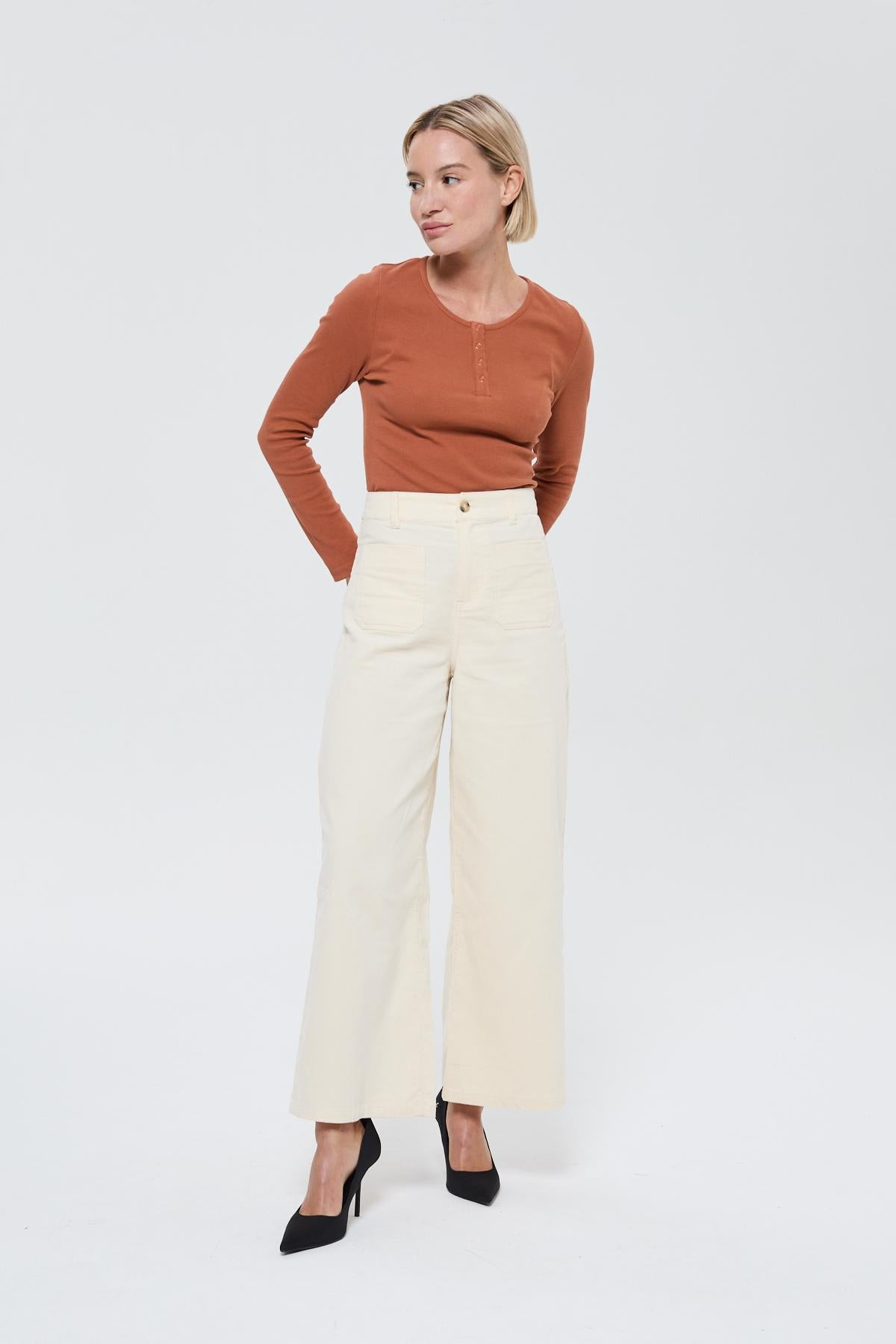 T-shirt manches longues en jersey côtelé incarne une silhouette féminine et confortable, pensée pour épouser naturellement les lignes du corps. Confectionné dans un mélange coton et d'élasthanne, il offre une élasticité légère et un toucher doux, idéal pour un porté seconde peau.